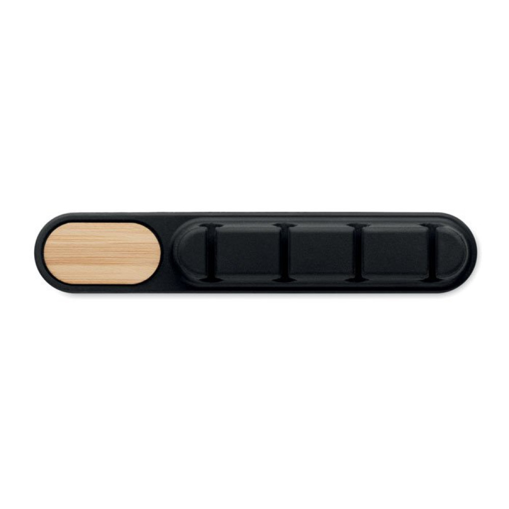 Силиконовый органайзер для кабелей с деталями из натурального бамбука. Компактный овальный дизайн обеспечивает аккуратное и надежное хранение кабелей.