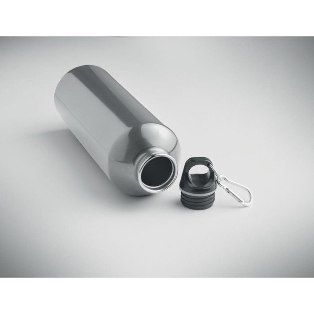 Одностенная бутылка из 90% переработанной нержавеющей стали и 10% нержавеющей стали с крышкой из полипропилена и карабином. Емкость 1000 мл. Возможно нагревание стенок.