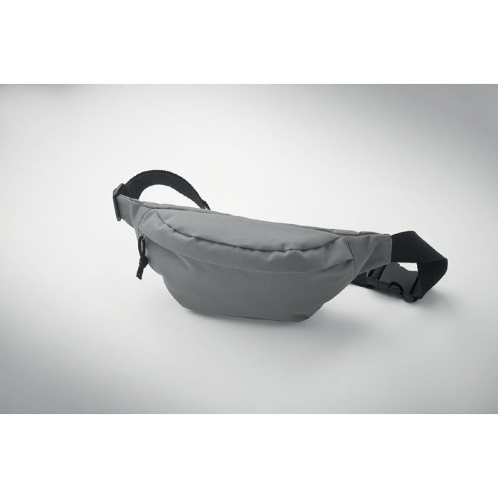 Поясная сумка из RPET 600D с основным отделением на молнии и потайным задним отделением на молнии.