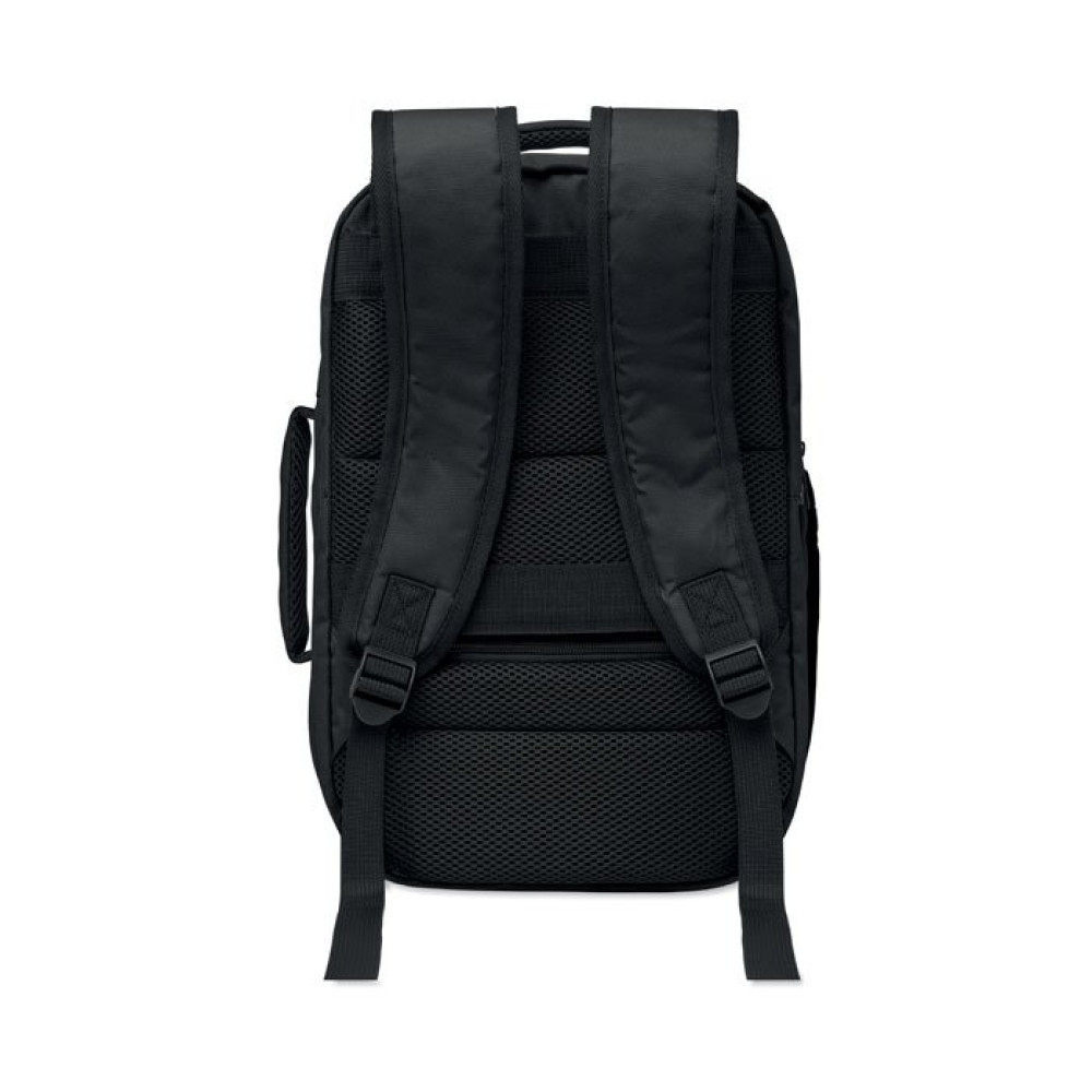 Рюкзак-трансформер для ручной клади из полиэстера RPET 600D. Имеет основное отделение с двумя открытыми секциями, сетчатую перегородку, мягкий карман для 15-дюймового ноутбука и багажный ремень.