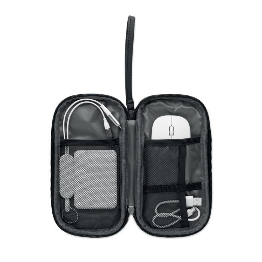 Чехол-органайзер для гаджетов из полиэстера RPET 600D с полиуретановым покрытием.