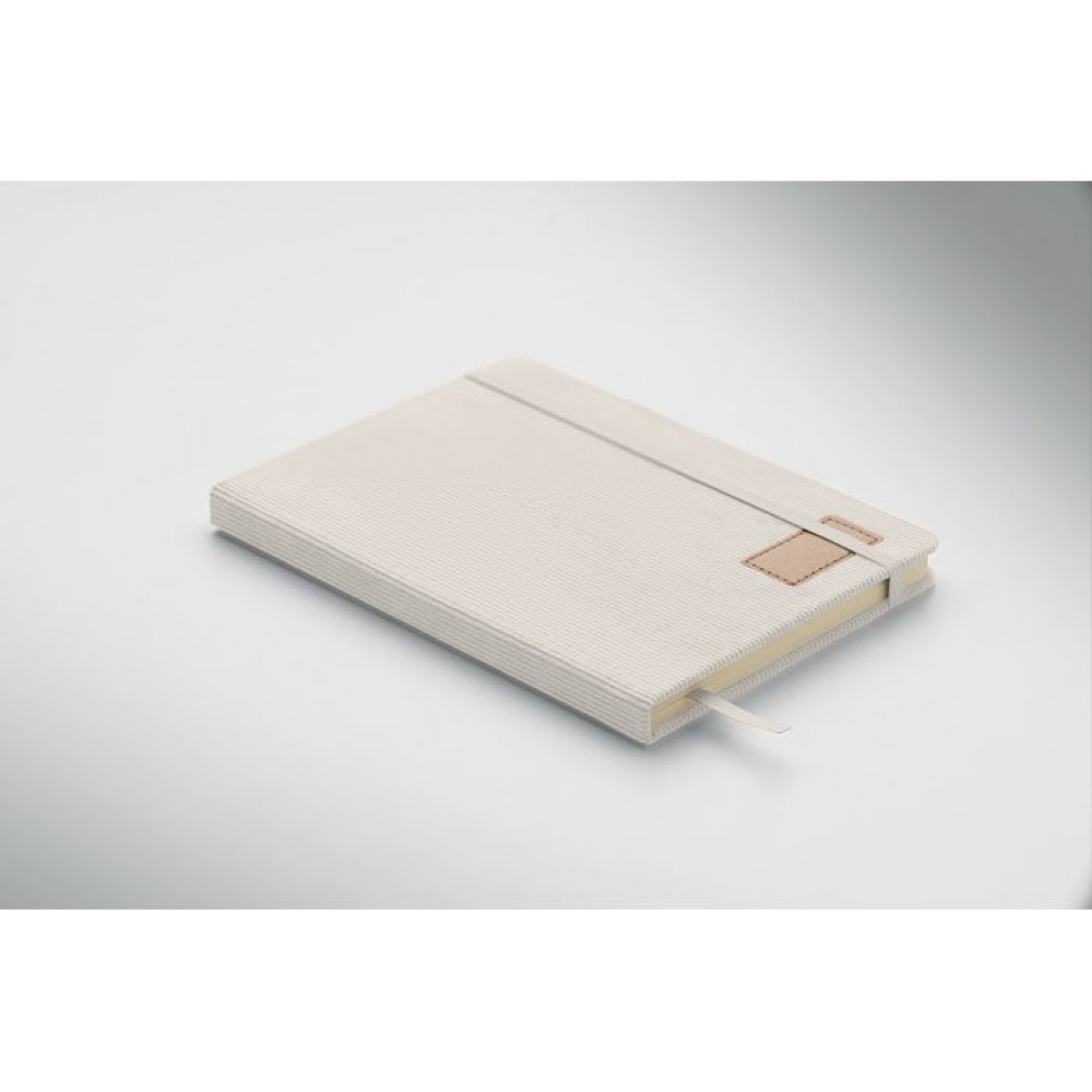 Блокнот А5 в переплете и твердой обложке из переработанного полиэстера и 192 страницами в линейку из переработанной бумаги (70 г/м2). Эластичная застежка, петелька для ручки и закладка лента.