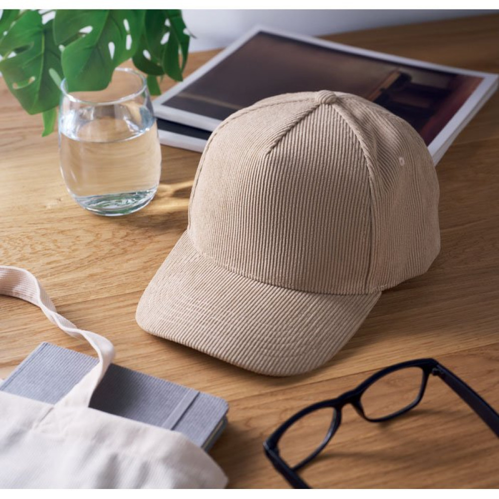 Вельветовая бейсболка 5-клинка из полиэстера с регулируемой застежкой на металлической пряжке. 220 г/м².