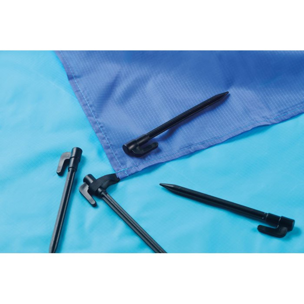Легкий пляжный коврик из полиэстера 210T размером 200x210 см. В комплекте 4 черных крючка и мешок для переноски.