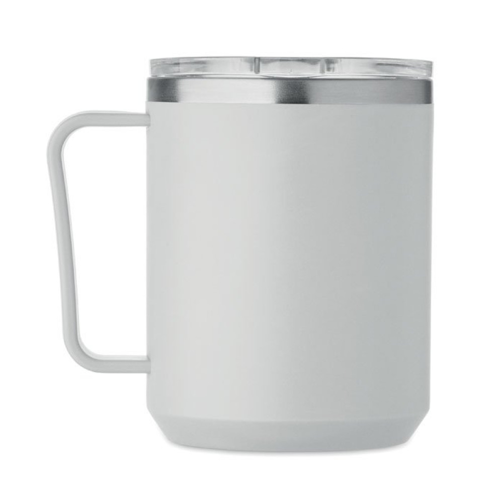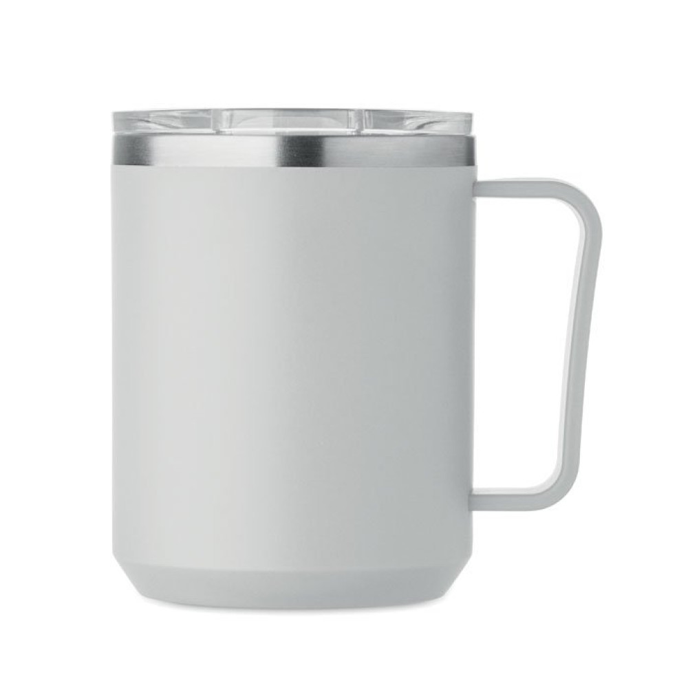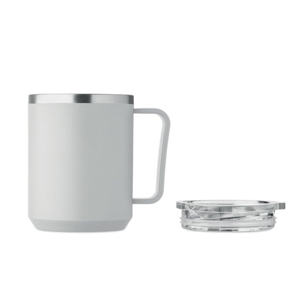 Кружка с двойными стенками из 90% переработанной нержавеющей стали, 10% нержавеющей стали внутри и переработанного полипропилена снаружи. Прозрачная крышка слайдер. Объём 400 мл.