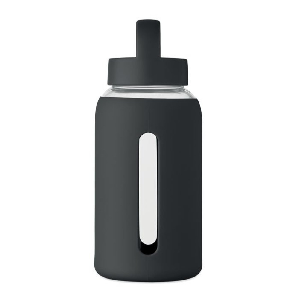 Бутылка из прочного боросиликатного стекла с силиконовым чехлом и крышкой с ручкой. Объем: 600 мл.