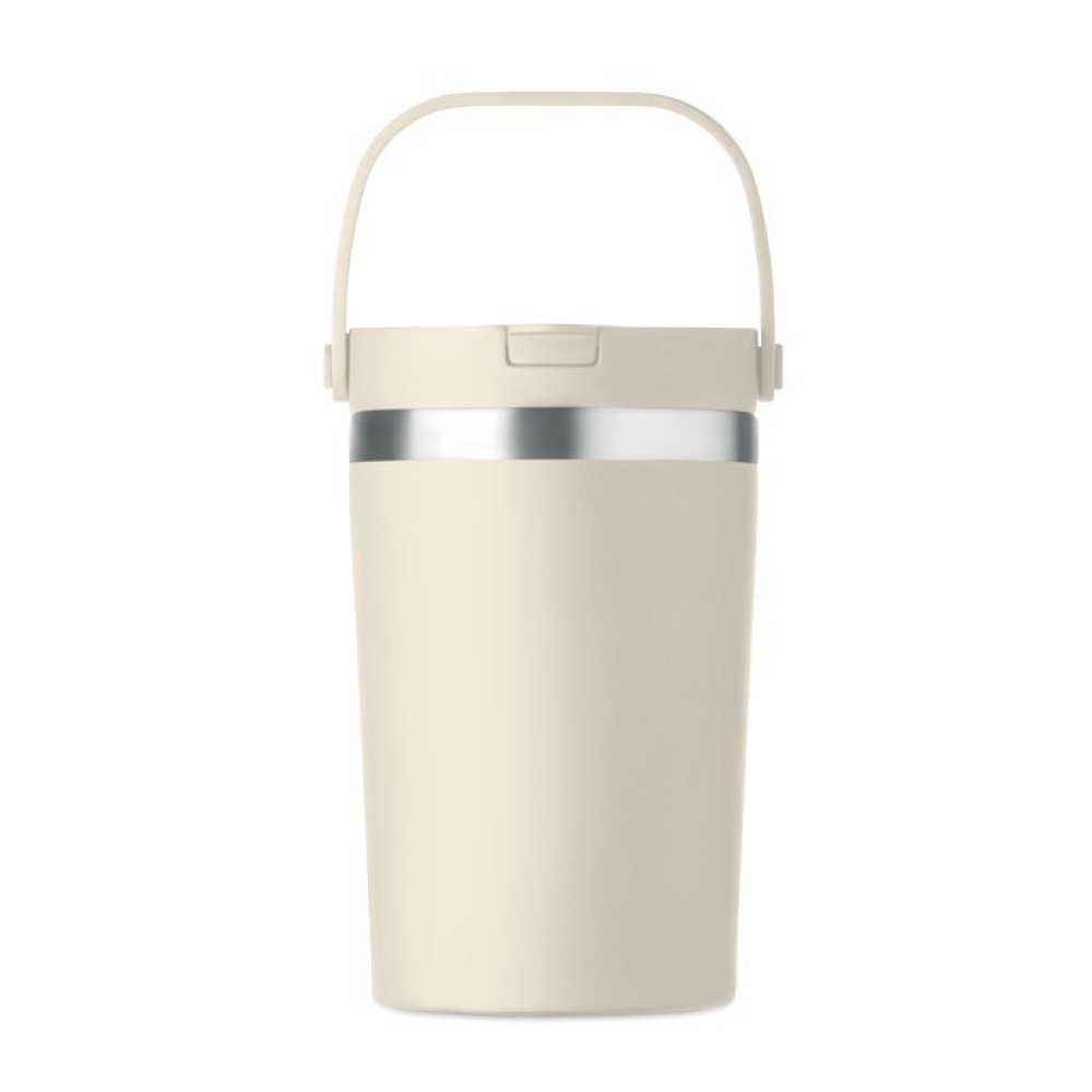Термостакан с двойными стенками из переработанной нержавеющей стали 90% и 10% нержавеющей стали и крышкой 2-в-1 из полипропилена (PP) с носиком и трубочкой. Герметичный и прочный. Объём: 350 мл.