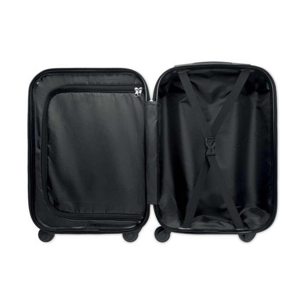 18-дюймовый чемодан из пластика. 1 основное отделение и внутренний карман. В комплекте замок. На 4 колесах.