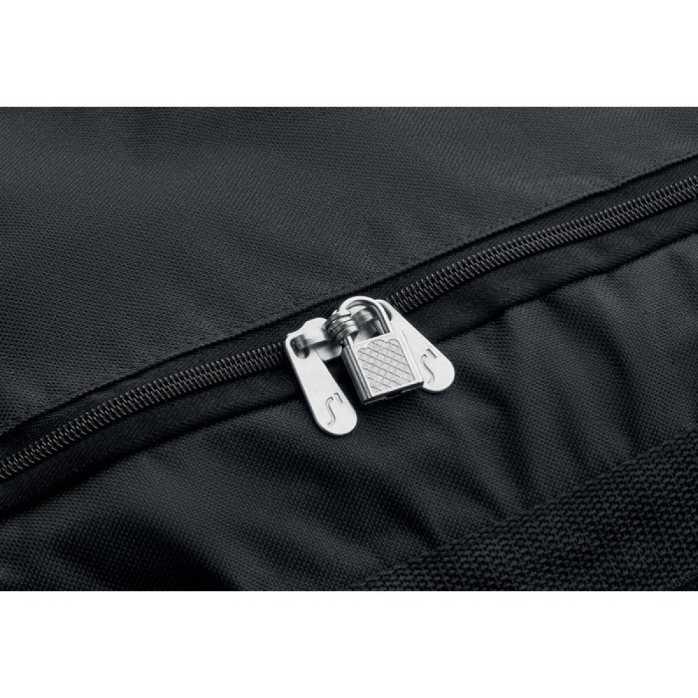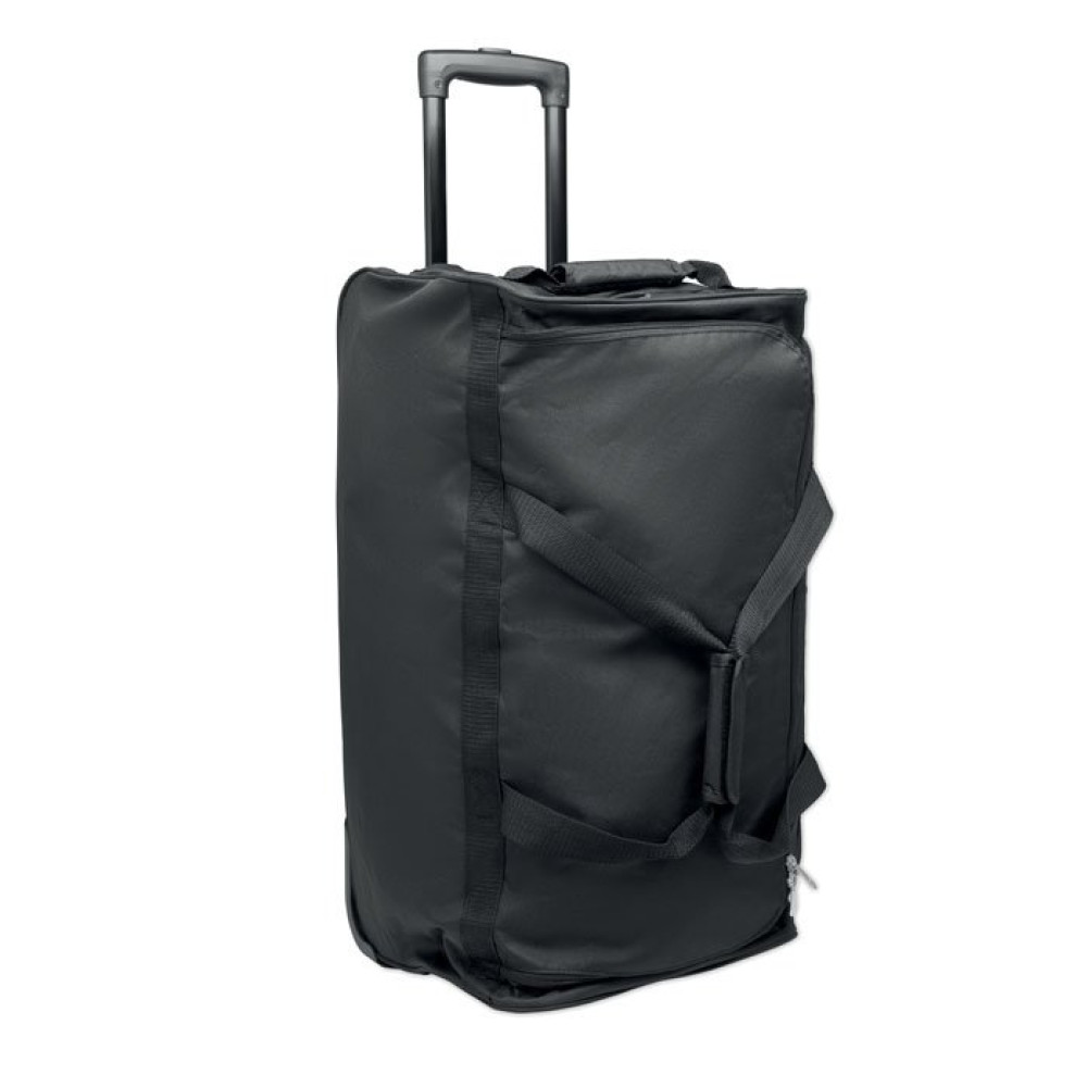 Мягкий чемодан-сумка из RPET 600D. Передний карман на молнии. Два боковых накладных кармана. Три внутренних кармана. Мягкие плечевые ремни. 2 колеса и двойная рама.
