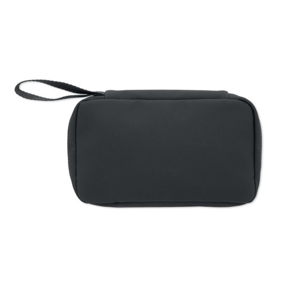 Косметичка из RPET 600D с полиуретановым покрытием. Передний карман на молнии, открытые карманы и внутренний сетчатый карман.