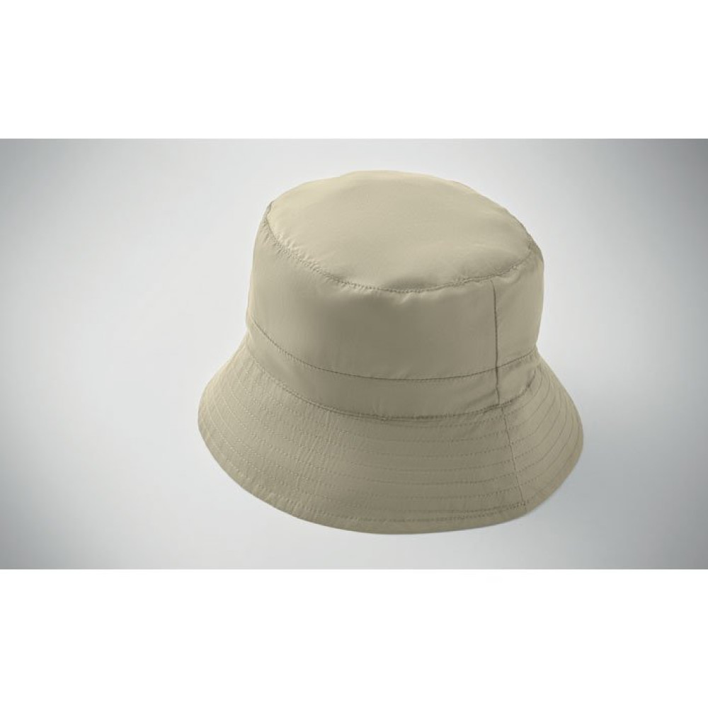 Шляпа рыбака из водоотталкивающего полиэстера, в комплекте чехол из того же материала с пластиковым карабином. 64 г/м².