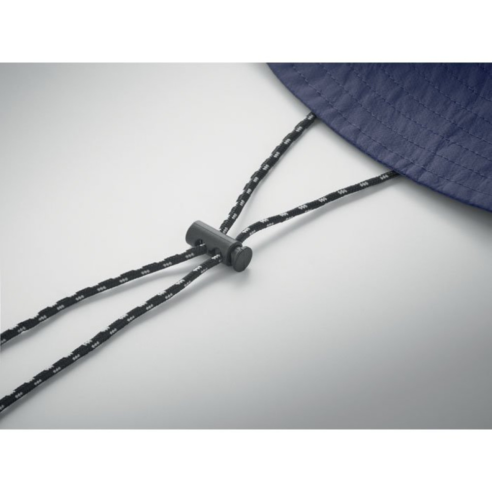 Шляпа рыбака из водоотталкивающего полиэстера, в комплекте чехол из того же материала с пластиковым карабином. 64 г/м².