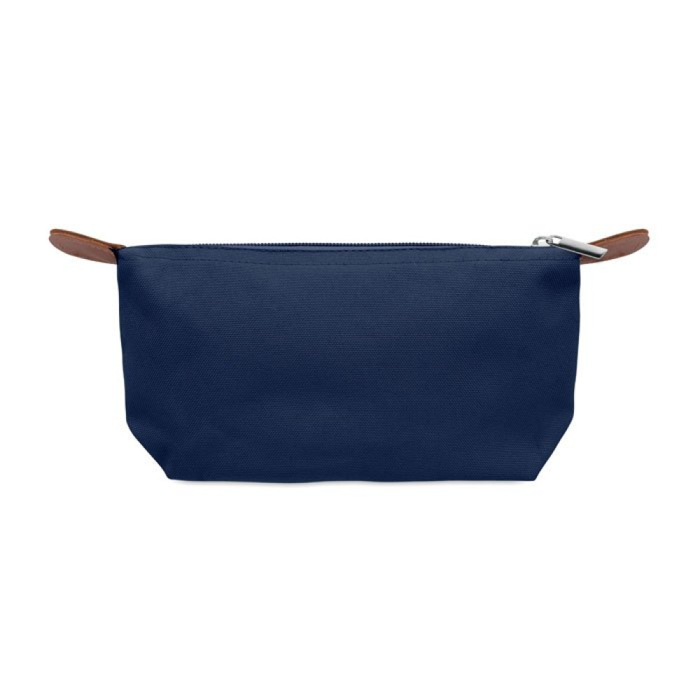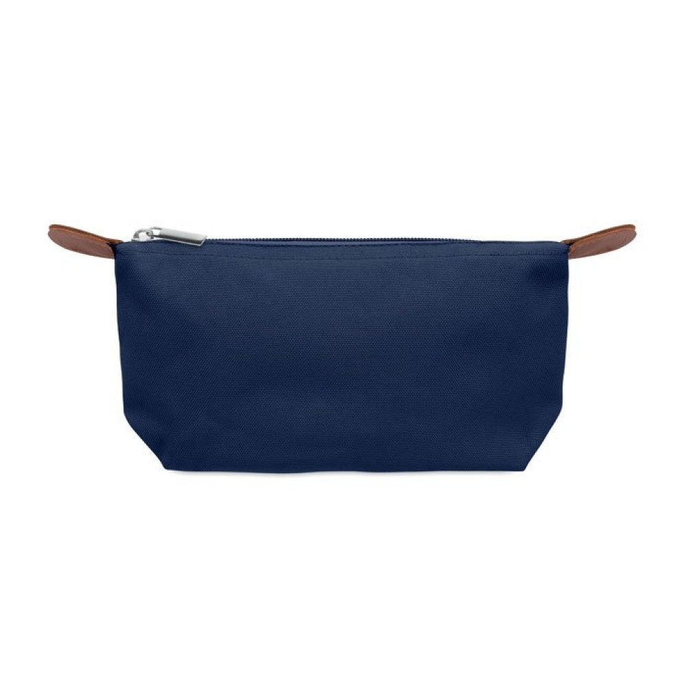 Косметичка из полиэстера RPET 600D на молнии и коричневыми полиуретановыми деталями.
