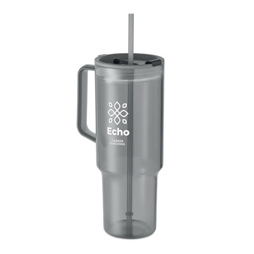 Термостакан из переработанного пластика с крышкой-трубочкой из полипропилена. Объем: 1200 мл.