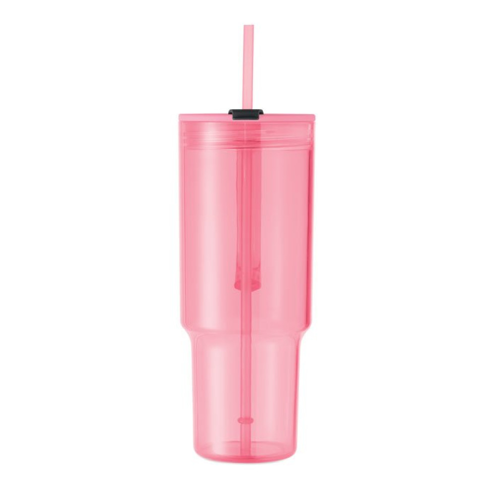 Термостакан из переработанного пластика с крышкой-трубочкой из полипропилена. Объем: 1200 мл.