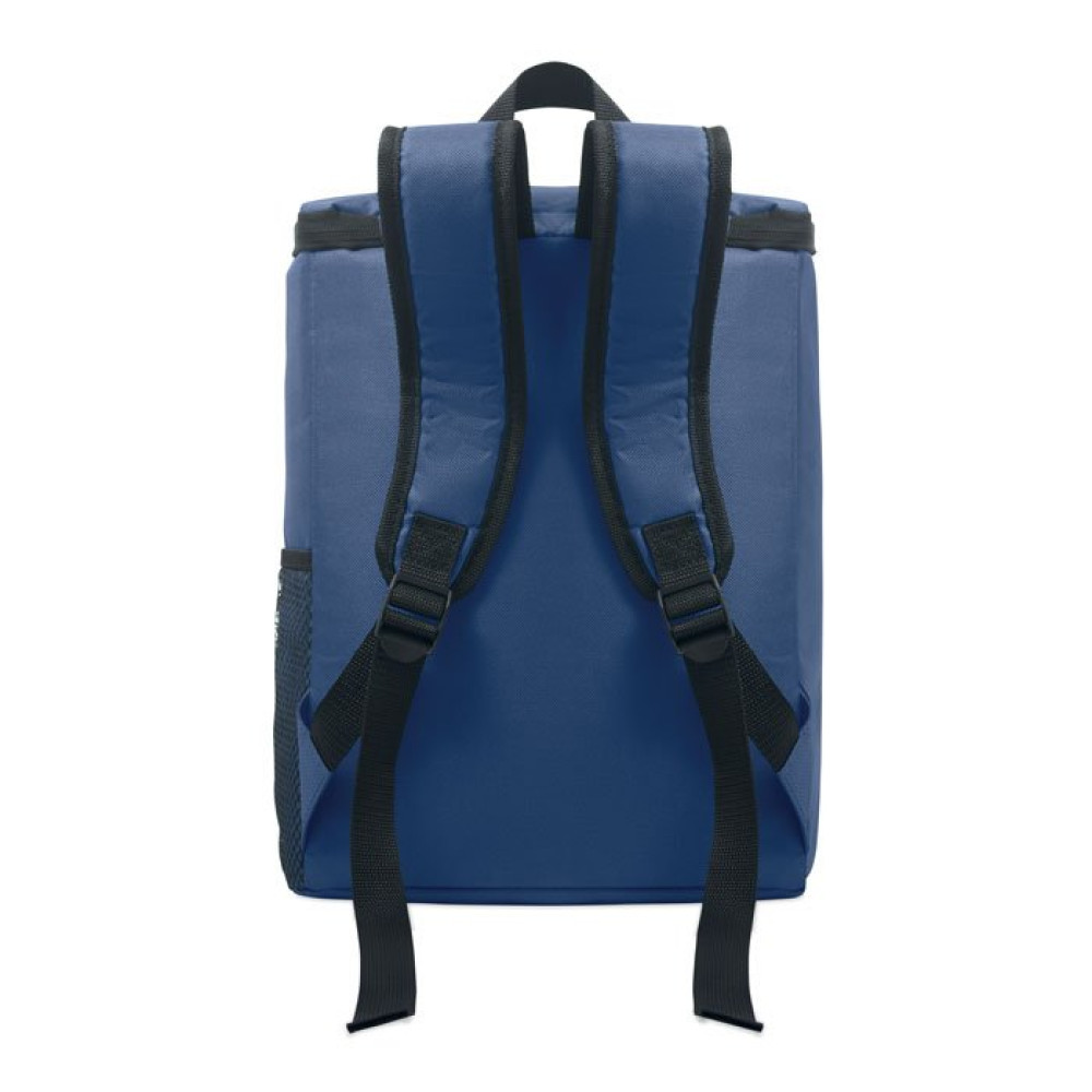 Рюкзак-кулер из полиэстера RPET 600D с мягким регулируемым плечевым ремнем, боковым сетчатым карманом на молнии и передним карманом. Подкладка из PEVA и пенополиэтилена толщиной 13 мм. Объем 11 л.