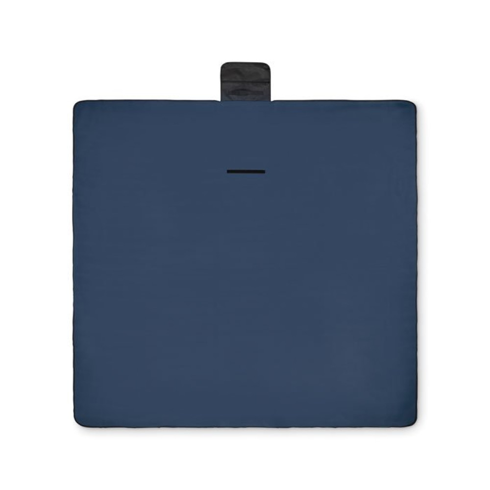 Плед для пикника из флиса RPET 150 г/м² (68% переработанный полиэстер/32% обычный полиэстер) с водоотталкивающим покрытием PEVA с обратной стороны. Спереди карман на молнии и ручка.