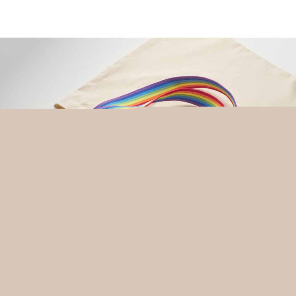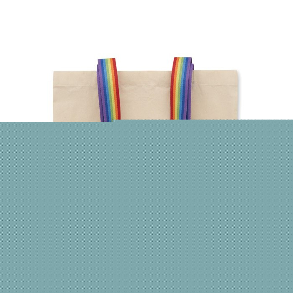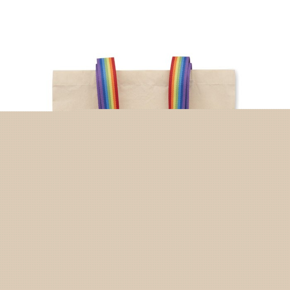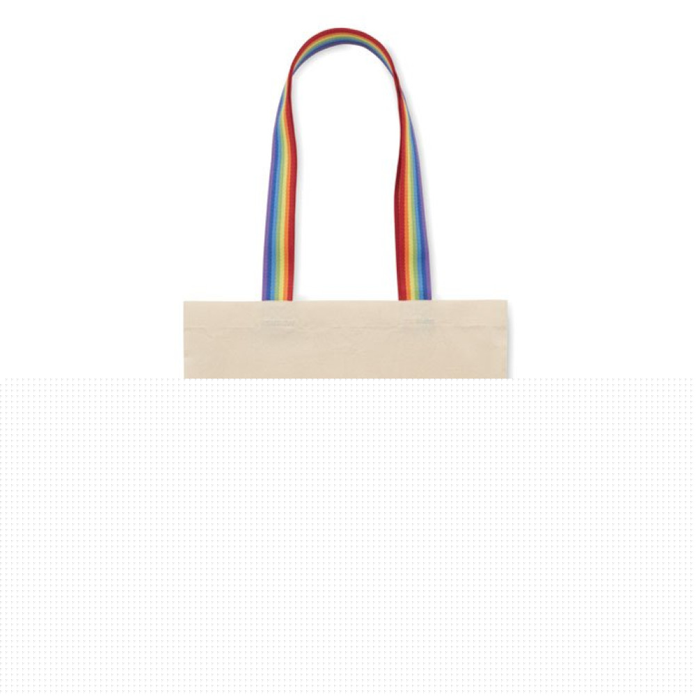 Хлопковая сумка для покупок плотностью 180 г/м² с разноцветными ручками. Максимальная нагрузка 2,5 кг.
