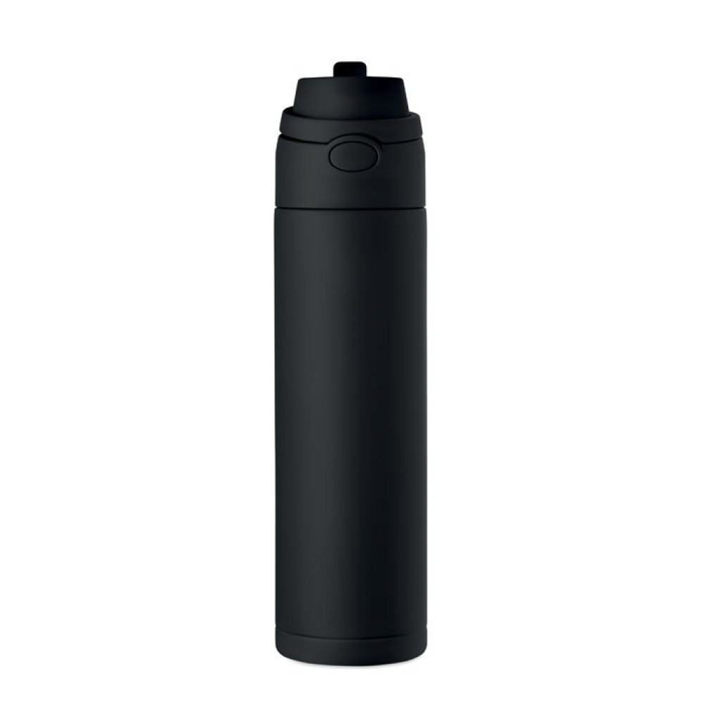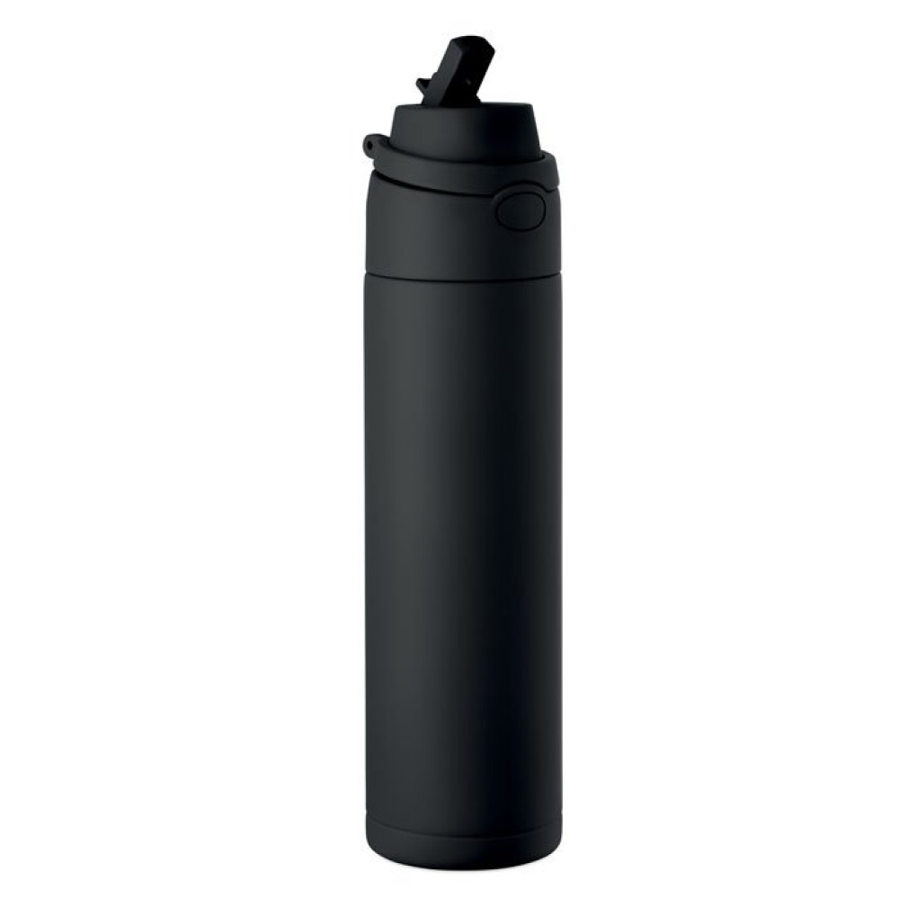 Бутылка с двойными стенками и изоляцией из 90% переработанной нержавеющей стали и 10% нержавеющей стали. Имеет трубочку 2 в 1, крышку из полипропилена и ручку. Герметичная. Объём: 500 мл.