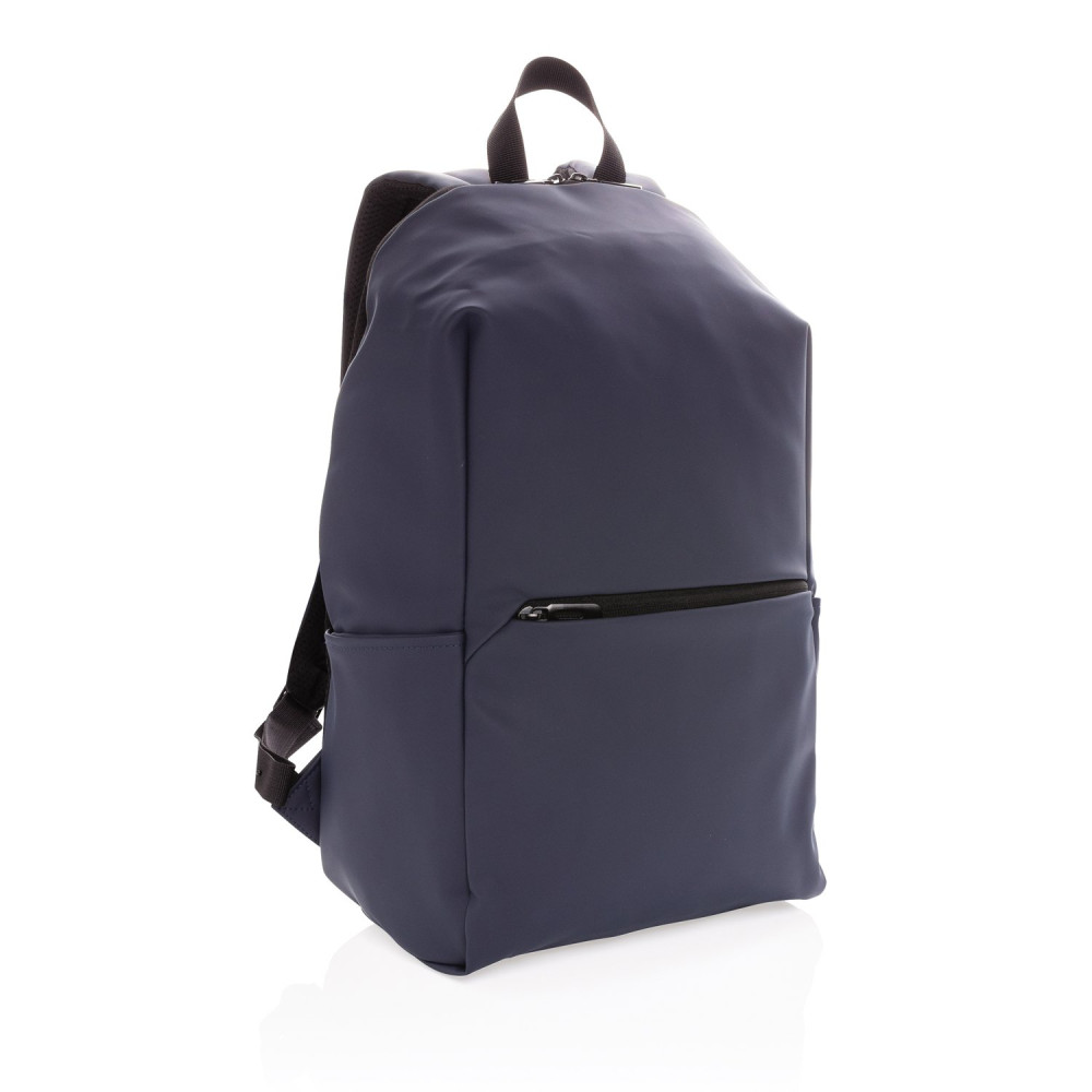 Минималистичный рюкзак из гладкого полиуретана с подкладкой и дополнительным карманом для ноутбука 15,6 дюймов. Также предусмотрены 2 внутренних кармана и 2 петли для ручек. Задняя стенка из сетчатого материала, регулируемые лямки. Снаружи — 100% полиуретан, внутри — полиэстер 210D. Без ПВХ.