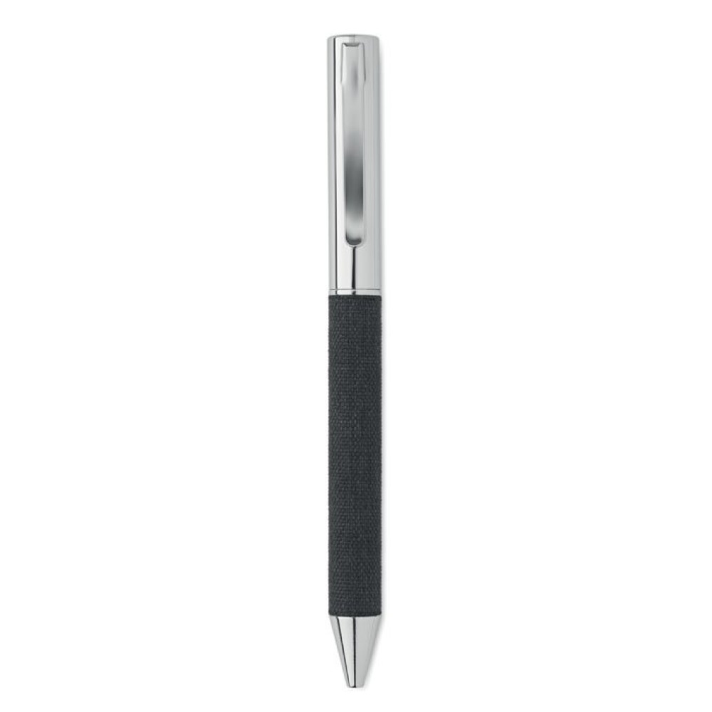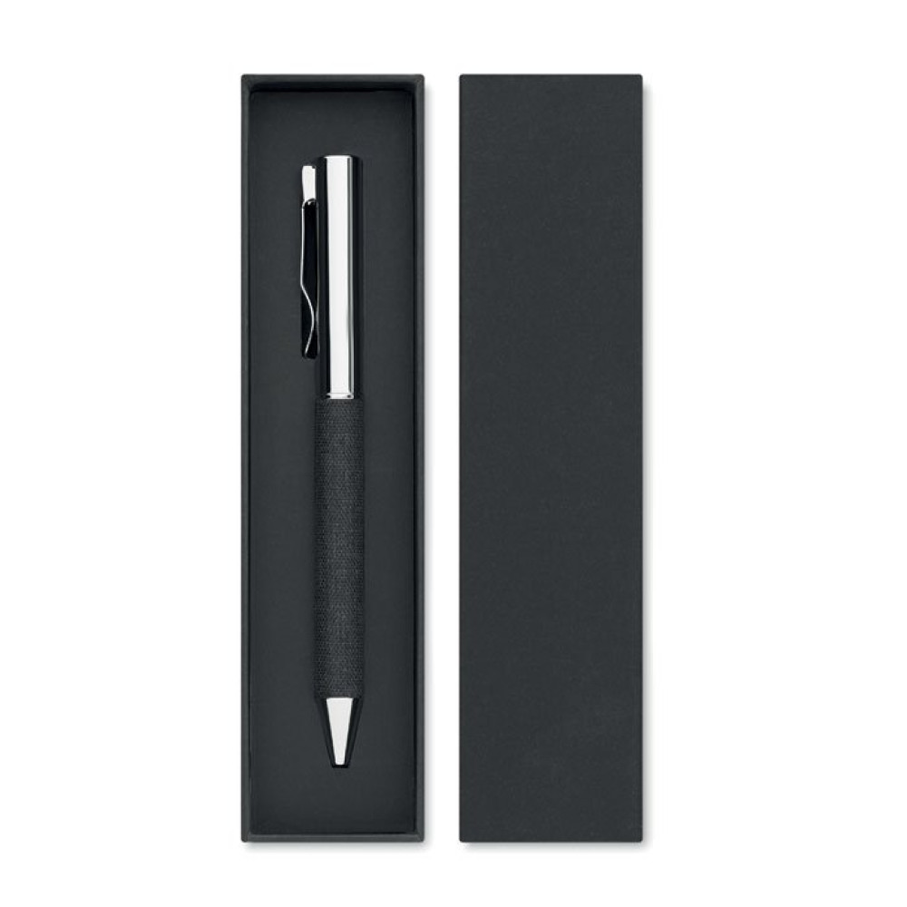 Металлическая шариковая ручка с крутящимся механизмом и вставками из полиэстера RPET в подарочной коробке. Синие чернила.
