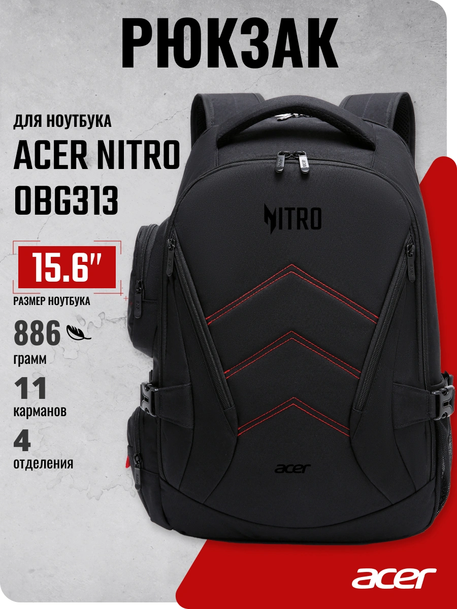 Рюкзак для ноутбука 15.6" Acer Nitro OBG313 черный/красный полиэстер (ZL.BAGEE.00G)