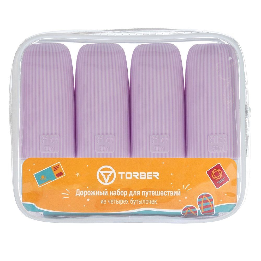 Дорожный набор бутылочек TORBER (4 пр.), силикон, сиреневый