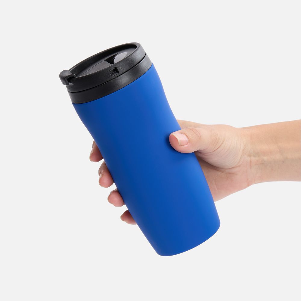 клапаном для питья. Покрытие софт-тач. В отверстие в крышке можно