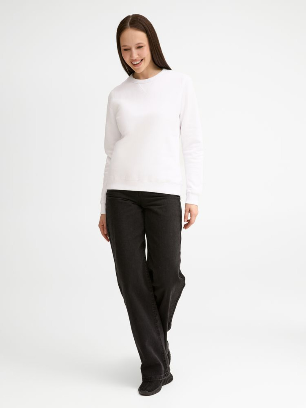 Женская утепленная толстовка с круглым вырезом и декоративной