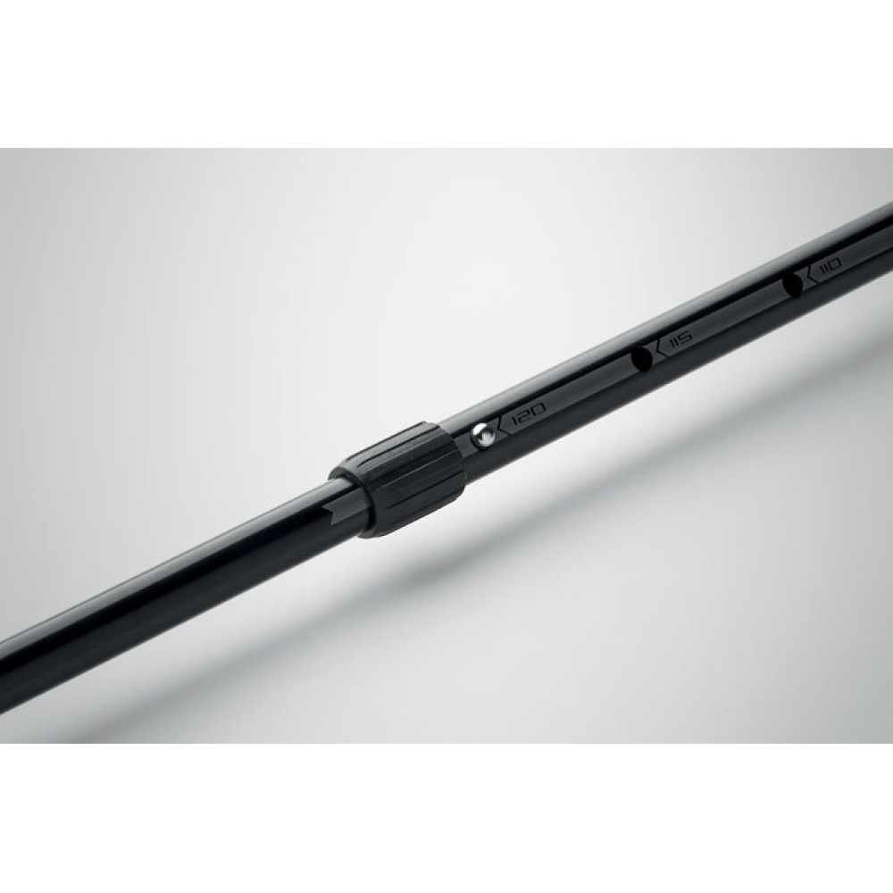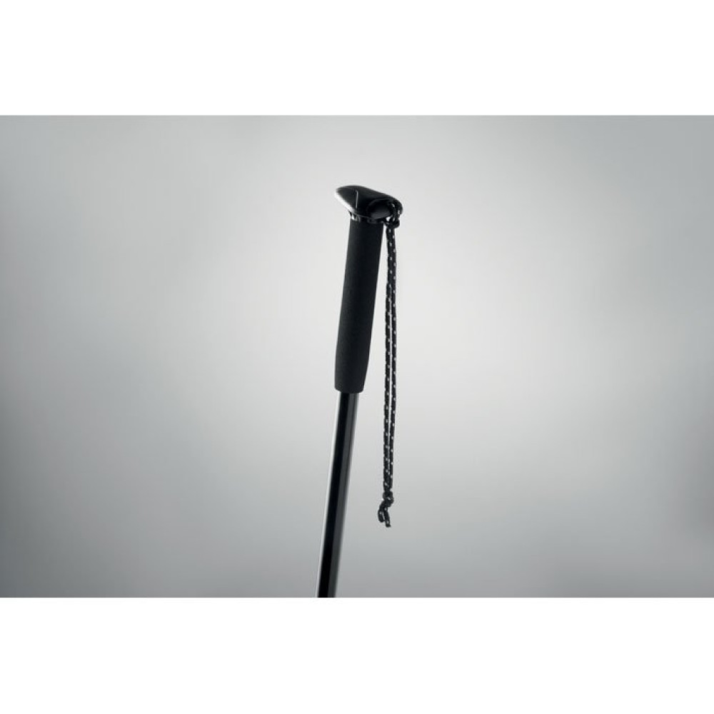 Телескопическая палка для хотьбы с рукояткой из EVA, ремешком на запястье, резиновым наконечником и чехлом. Регулируется от 105 до 120 см. Упакована в мешочек из RPET. Легкая и прочная конструкция.