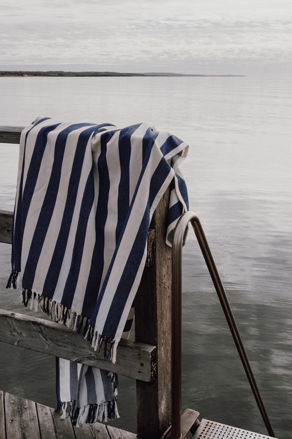 Накидка Ornos с декоративной бахромой по коротким сторонам выполнена из легкой и воздушной ткани плотностью 200 г/м². Она сочетает мягкость и комфорт хлопка с преимуществами быстрой сушки, которые дает полиэстер. Благодаря большому размеру 180×180 см накидку можно использовать для отдыха на пляже или в шезлонге у бассейна. Классическая сине-белая полоска — это культовый принт, ассоциирующийся с морским стилем, французским шиком и летней свежестью. Экологичность и качество: Накидка сертифицирована по стандарту GRS (Global Recycled Standard). Это гарантирует, что вся цепочка поставок переработанных материалов подтверждена и сертифицирована. Состав переработанных материалов (от общего веса изделия): • 70% — переработанный хлопок, сертифицированный GRS • 29% — переработанный полиэстер, сертифицированный GRS Ключевые особенности: • Универсальность: Подходит для хамама, пляжа, бассейна и спа-процедур. • Большой размер (180×180 см): Комфортно укутаться с головой или разместиться вдвоем. • Легкая и быстро сохнущая: Воздушная ткань 200 г/м² не занимает много места в багаже и быстро высыхает. • Стильный дизайн: Декоративная бахрома по краям и классическая полоска в морском стиле. • Экологичный состав: Изготовлена из переработанных материалов с международным сертификатом GRS (99% переработанного сырья). Накидка VINGA Ornos GRS — это осознанный выбор для тех, кто ценит комфорт, стиль и заботу об окружающей среде.