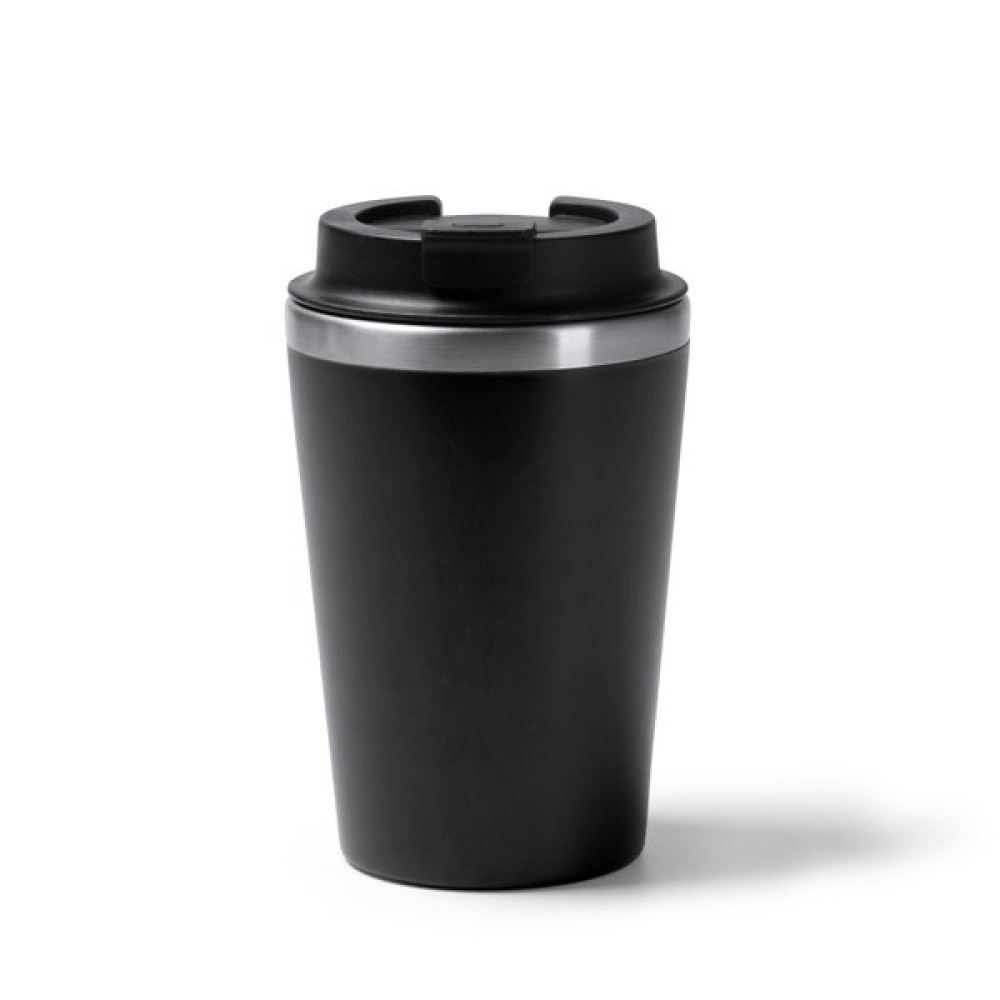 Чашка с двойными стенками. Внутренняя часть из нержавеющей стали 304, внешняя часть из переработанного полипропилена. Винтовая крышка, порт для питья закрывается на клапан. Объем: 350 мл. Презентация в дизайнерской коробке.