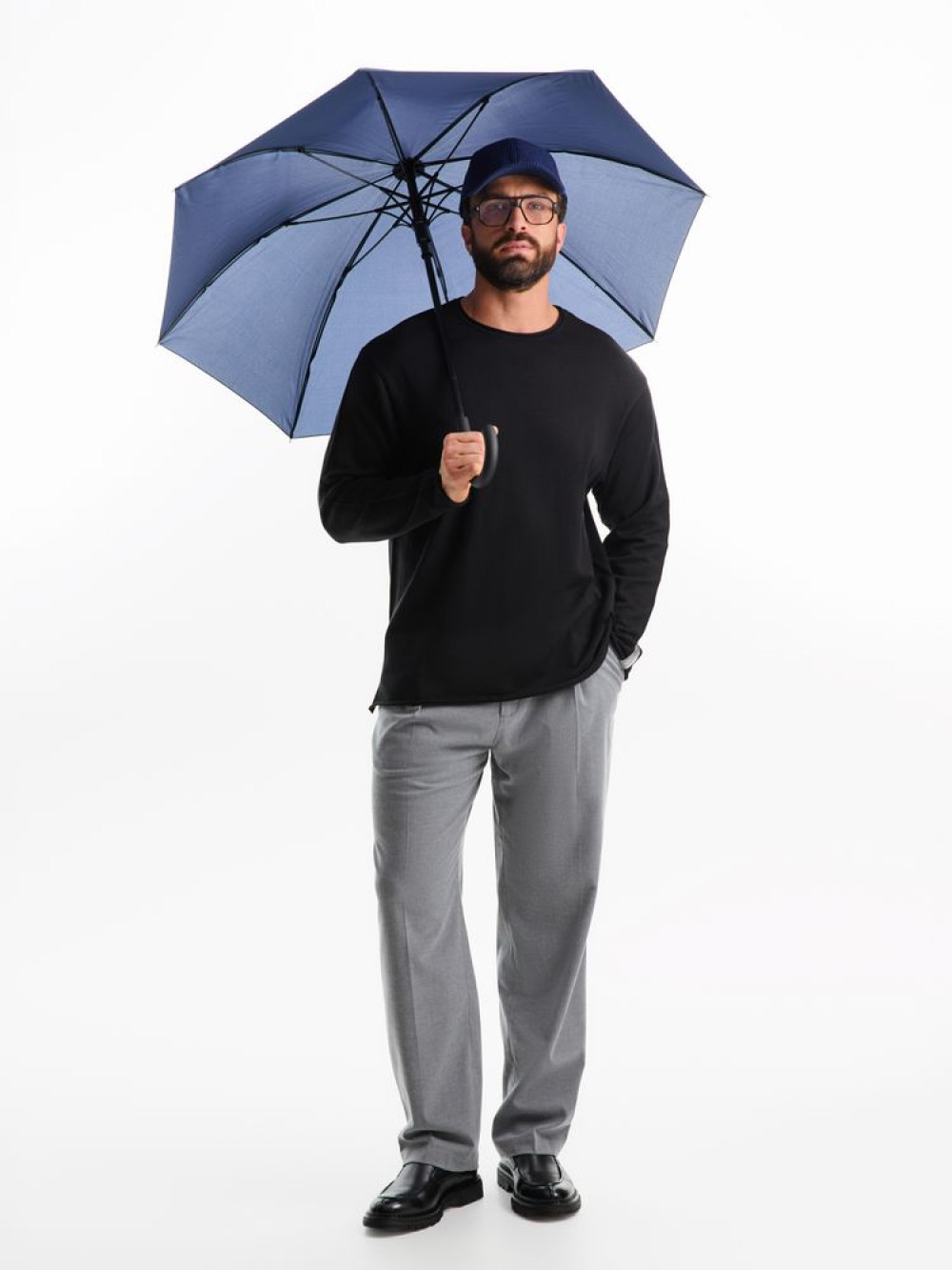 На первый взгляд — это классический зонт-трость в строгом дизайне: